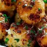 Alors tu as envie de grignoter quelque chose de savoureux sans te coller à la cuisinière pendant des heures, hein ? Pareil. Ces boulettes de chou-fleur au parmesan sont la solution parfaite. Croustillantes dehors, moelleuses dedans, et assez convaincantes pour faire croire à tout le monde que tu as passé des heures en cuisine. Spoiler alert : tu ne l’as pas fait.
