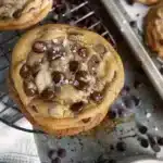 - Cuire les biscuits : Préchauffez votre four à 350℉ (180℃). Tapissez quelques plaques à biscuits de papier sulfurisé ou de tapis de cuisson en silicone. Placez 3-4 biscuits sur une plaque, en laissant beaucoup d’espace car ils sont grands. Faites cuire pendant 12-16 minutes. Les centres des biscuits peuvent sembler un peu sous-cuits à la sortie du four, et ils peuvent être légèrement bombés sur le dessus. Les bords seront fermes au toucher. Ils acquerront une texture douce et moelleuse en refroidissant. Laissez les biscuits refroidir sur la plaque pendant environ 5 minutes, puis appréciez-les !