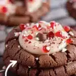 Delicious peppermint shortbread cookies filled with milk chocolate and decorated with crushed candy canes, perfect for festive occasions.