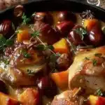 Une blanquette de dinde tendre avec des châtaignes croquantes et de la citrouille crémeuse, parfaite pour un dîner réconfortant.