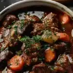 Alors tu veux préparer un plat qui sent bon la maison, qui réchauffe le cœur et qui te fait passer pour un chef sans te ruiner en stress? Parfait. Ce boeuf bourguignon est la réponse. Simple, rustique et follement réconfortant, il te fera presque croire que tu maîtrises la cuisine française à la perfection.