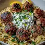 Boulettes Grecques & Orzo Citronné avec Crème de Feta