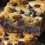 Assemblage dans le plat : Dans un plat recouvert de papier sulfurisé, étalez la pâte à brownie en première couche. Ensuite, distribuez uniformément la pâte à cookie par-dessus. Laissez un peu de place pour que la chaleur puisse circuler et que chaque couche cuise correctement.