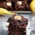Des brownies sains et savoureux, préparés avec seulement trois ingrédients : bananes, beurre de cacahuète et poudre de cacao.