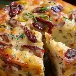Si vous cherchez une façon savoureuse d’utiliser les restes de rôti de porc, ce cake salé moelleux au rôti de porc et tomates séchées est la réponse parfaite. Ce plat réconfortant, qui combine des saveurs riches et une texture légère, est idéal pour les pique-niques, les déjeuners sur le pouce, ou même les apéritifs en famille ou entre amis. Vous allez adorer le mélange de viande tendre et de tomates séchées, qui donne une dimension gustative incroyable. Enfilez votre tablier, car nous allons plonger dans les délices de cette recette !