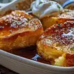 Servez ce casserole en tranches individuelles, chaud, pour maximiser l’effet de la couche de caramel doré. Ajoutez des baies fraîches ou une crème fouettée pour une présentation encore plus appétissante. Un café ou un thé chaud à côté fera un excellent accompagnement, idéal pour un brunch.
