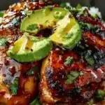 Un poulet mariné au miel et au citron vert, servi sur un lit de riz à l’avocat, parfait pour les repas réconfortants sans tracas.