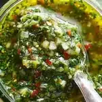 A vibrant Argentine sauce made with fresh herbs, garlic, and spices that elevates any grilled meat into a gourmet experience.