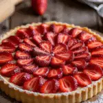 Une tarte française classique qui met magnifiquement en valeur la fraîcheur des fraises de saison avec une pâte sablée et une crème pâtissière délicate.