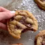 Faites cuire jusqu’à ce que les cookies aient gonflé et soient dorés sur les bords mais encore un peu moelleux au centre, environ 12 à 13 minutes. Retirez la plaque du four, saupoudrez de sel de mer en flocons (si désiré) et laissez les cookies refroidir légèrement sur la plaque avant de servir.