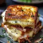 Un délicieux Croque-Monsieur cuit au four, doré et croustillant, parfait pour un déjeuner ou un dîner léger.