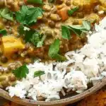 Un plat végétarien réconfortant et nutritif, alliant lentilles, légumes et lait de coco pour un mélange crémeux et savoureux.