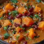 Curry Végétarien de Potimarron et Haricots Rouges au Lait de Soja