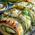 Feuilleté croustillant aux courgettes, pesto et burrata