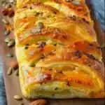 Un feuilleté réconfortant au potimarron et au miel, enveloppé dans une pâte croustillante, parfait pour les soirées d’automne.