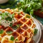 Des gaufres salées croustillantes à l’extérieur et moelleuses à l’intérieur, chargées de fromage, parfaites pour le petit-déjeuner ou en apéritif.