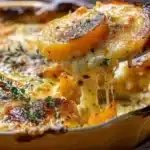Un délicieux gratin alliant la douceur de la courge butternut et la crémeuse texture d’une sauce à la crème et fromage.