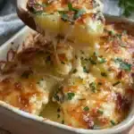 Un gratin réconfortant à base de pommes de terre, de fromage raclette et d’oignons caramélisés, parfait pour les dîners en famille.