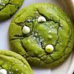 Savourez des cookies au matcha moelleux avec une touche de chocolat blanc, parfaits pour toutes les occasions.