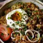 A traditional Lebanese dish combining lentils, rice, and caramelized onions, Mujadara is a simple, nourishing, and comforting meal.