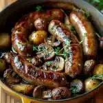 A comforting and flavorful dish made with sausages, mushrooms, and potatoes. Perfect for family dinners with minimal effort.