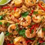 Une recette savoureuse et rapide de Pad Thai avec des nouilles de riz, des crevettes et du tofu, parfait pour les soirées chargées.