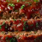 Un délicieux pain de viande nappé de sauce tomate, parfait pour un repas familial réconfortant.