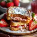 Un délicieux pain perdu farci au fromage à la crème et aux fraises, parfait pour un brunch ou un petit déjeuner spécial.