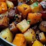 This autumn dish brings together the comforting flavors of pumpkin, potatoes, carrots, and mushrooms, creating a vibrant and savory experience perfect for family dinners or gatherings with friends.