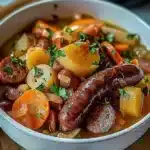 Une délicieuse potée réconfortante aux saucisses fumées et légumes, parfaite pour les journées froides.