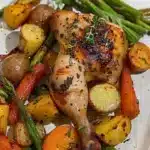 Un plat réconfortant de poulet rôti avec des légumes frais et des pommes de terre, facile à préparer et idéal pour les soirs de semaine.