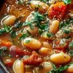 Un ragoût crémeux de haricots blancs et tomates, mijoté à la perfection et prêt en un rien de temps.