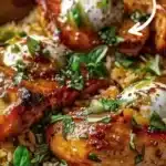 - Est-ce que je peux préparer ce plat à l’avance? Oui, le riz se conserve bien 1 à 2 jours au frigo. Réchauffez doucement avec un peu d’eau ou de bouillon pour récupérer l’humidité.