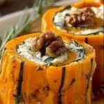 Un roulé délicieux de potimarron, fromage de chèvre et noix, parfait pour surprendre vos invités avec des saveurs automnales.