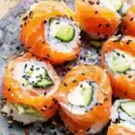 Les roulés de saumon fumé se servent frais. Disposez-les joliment sur un plat et accompagnez-les de petites coupelles de sauce soja pour tremper. Vous pouvez également les garnir de quelques herbes fraîches comme de l’aneth ou des rondelles de citron pour une touche de fraîcheur.
