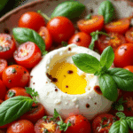 Cette salade burrata – tomates cerises est plus qu’un plat : c’est une invitation à profiter du meilleur de la saison. Facile à préparer, belle à présenter, équilibrée à savourer, elle s’impose comme une star de la cuisine d’été.