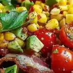 Une salade estivale rafraîchissante combinant les saveurs du maïs, de l’avocat et du bacon croustillant, parfaite pour les repas en plein air.