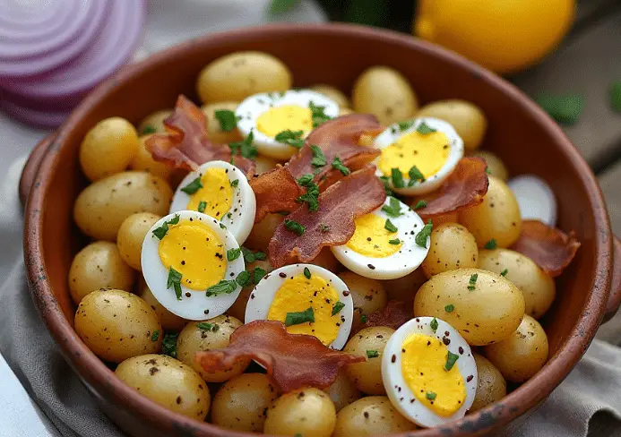 La salade de pommes de terre et harengs marinés est bien plus qu’un simple plat froid. C’est une recette pleine de caractère, de tradition et de bienfaits nutritionnels. Originaire de plusieurs régions d’Europe, notamment l’Allemagne, la Scandinavie et l’Est de la France, cette salade représente une symbiose parfaite entre rusticité et raffinement.