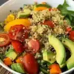Une salade colorée et nutritive alliant quinoa et avocat, parfaite pour un déjeuner léger ou un accompagnement.