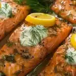 Un saumon au four facile à préparer avec une marinade citron-aneth, parfait pour impressionner sans passer des heures en cuisine.