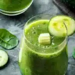 Un smoothie détoxifiant rapide et délicieux à base d’épinards, concombre et kiwi, parfait pour une collation saine.