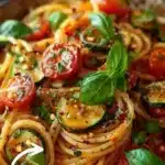 Un plat réconfortant qui capture l’essence de l’été avec des spaghettis légers, savoureux et riches en légumes.