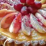 - Essayez d’autres fruits : La tarte peut également être réalisée avec des fruits d’été comme des pêches ou des cerises pour un goût différent mais tout aussi délicieux.