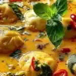 Soupe Thaïlandaise au Curry avec Dumplings à la Noix de Coco