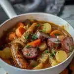 Un ragoût réconfortant aux saucisses fumées, parfait pour les journées fraîches.
