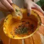 Que vous choisissiez de le servir lors d’un dîner chaleureux entre amis ou comme une entrée raffinée pour un repas de fête, le velouté d’automne dans un potimarron ne manquera pas de faire sensation. Les couleurs vives, les saveurs délicates et l’aspect festif de ce plat en font le favori de tous ceux qui l’essaient. Alors, préparez-vous à apprécier chaque cuillerée de cette délicieuse soupe qui capture l’essence même de l’automne. Bon appétit !